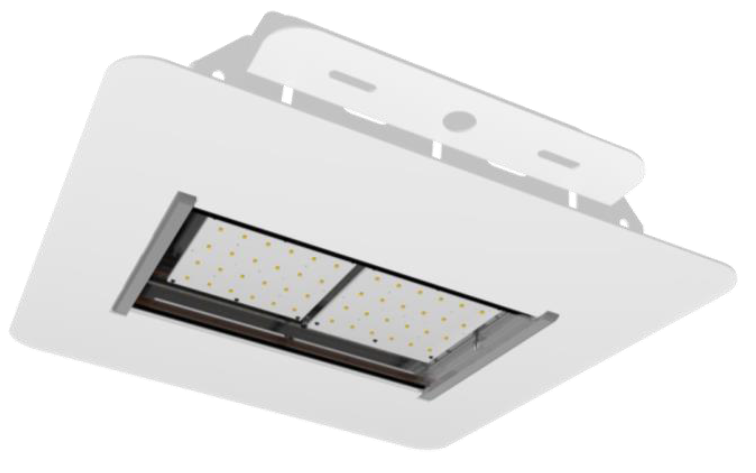 Встраиваемое исполнение с декоративной рамкой. Предназначен для освещения промышленных объектов, в том числе АЗС.